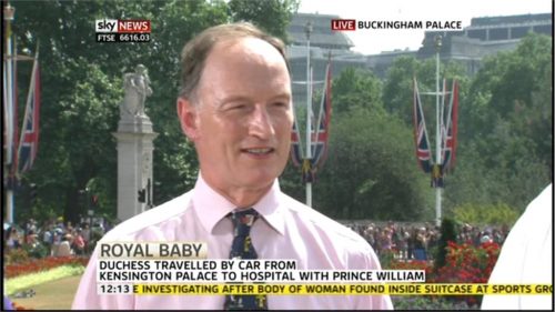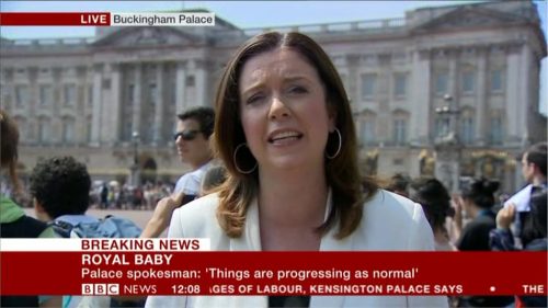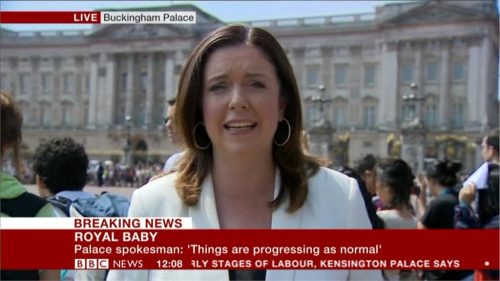 From 11.05am, BBC News’ Jane Hill presents Royal Baby coverage from outside Buckingham Palace