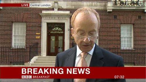 Bill Turnbull and Susanna Reid broke the news on Breakfast at 7.31am this morning, with Nicholas Witchell at St. Mary’s Hospital: