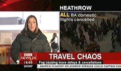 In December 2006, most of Britain was hit by fog which severely disrupted air travel. News networks covered the story in-depth.